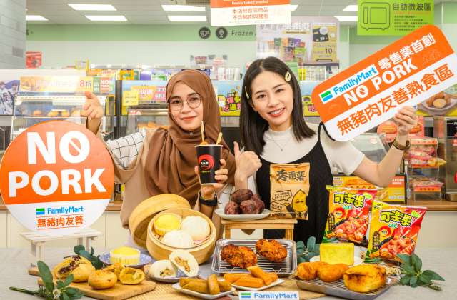 此外,因應穆斯林的飲食禁忌需求,凡全店鮮食商品成分中不含豬肉、豬油者,皆於包裝正面清楚標示「NO PORK」;並於全台超過 200 間店舖打造「NO PORK 無豬肉熟食區」,透過雙語告示與一致化設計,協助有需求的消費者快速辨識、安心選購。