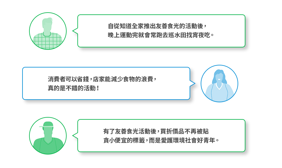 「友善食光」指全家貨架上的鮮食,到期前7小食以內的商品,結帳時享7折優惠,假設凌晨 12 點過期的商品,消費者就能在下午 5 點開始買到折扣鮮食。