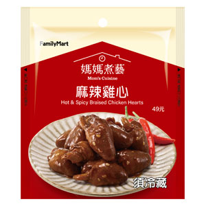 【媽媽煮藝】嚴選新鮮雞心,以秘製麻辣滷汁慢火入味,花椒香氣層層堆疊,麻而不嗆、辣而回甘。口感彈嫩不腥,每一口都是越嚼越香的滿足,是嗜辣族不能錯過的經典滷味。
